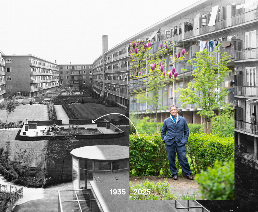 At the beginning of Geuzenhof stood a collaboration of well-known creative and socially engaged personalities, including urban planners Cornelis van Eesteren and Jakoba Mulder, building contractor Huibert van Saane, architects Jacob Dunnebier and Johannes F. Berghoef, garden architect Mien Ruys, and industrial designer Piet Zwart. Inspired by the early-20th-century garden city concept, which aimed to establish ‘social cities,’ they created an exemplary neighborhood in Amsterdam.